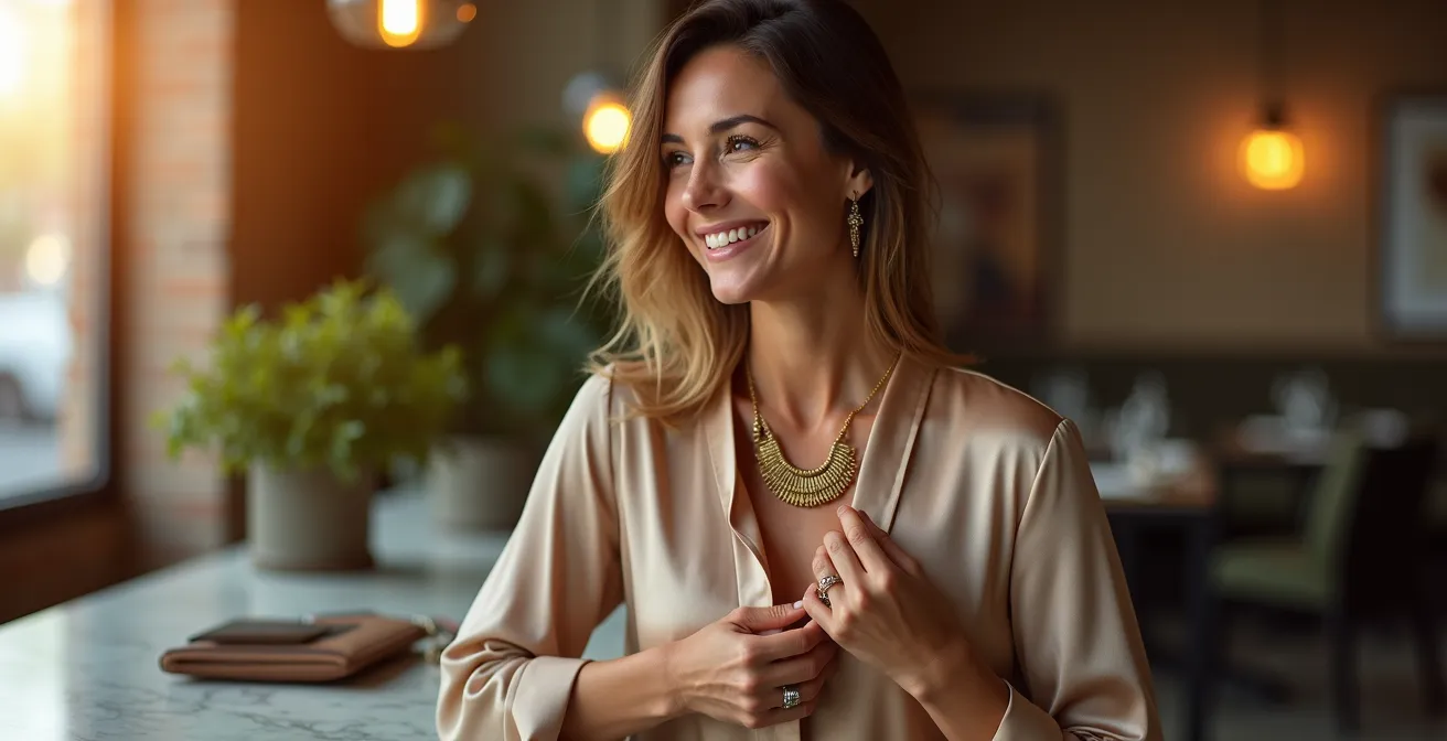 El arte del layering o superposición de collares es una de las formas más efectivas de inyectar personalidad y un aire sofisticado a un escote sencillo, como el de una camisa de oficina o un top básico. Sin embargo, el riesgo de pasar de «chic» a «caótico» es alto. El secreto no está en la cantidad, sino en la técnica y el equilibrio. La clave es crear una cascada visual armoniosa, donde cada collar tenga su propio espacio para brillar sin competir con los demás.